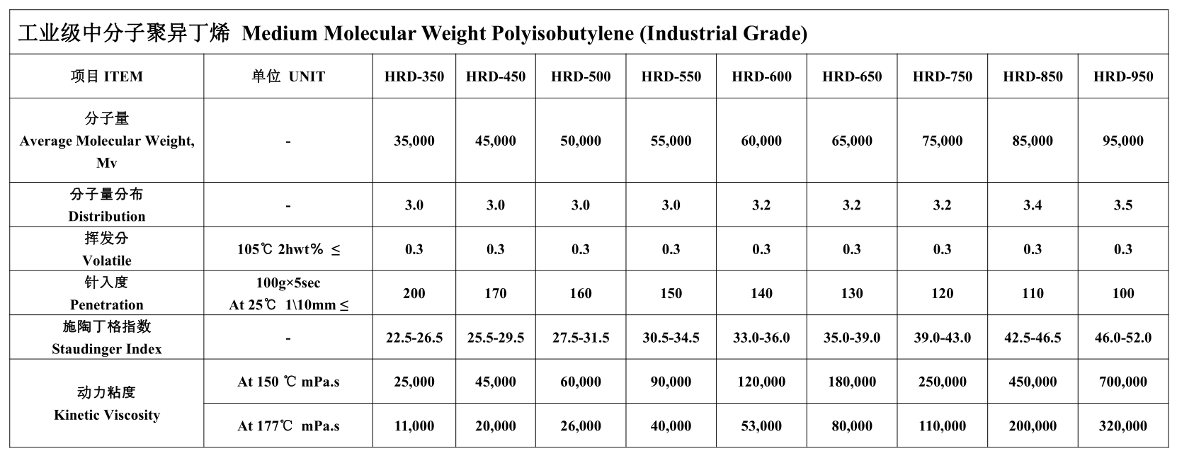 Medium Molecular Weight Polyisobutylene (Industrial Grade)